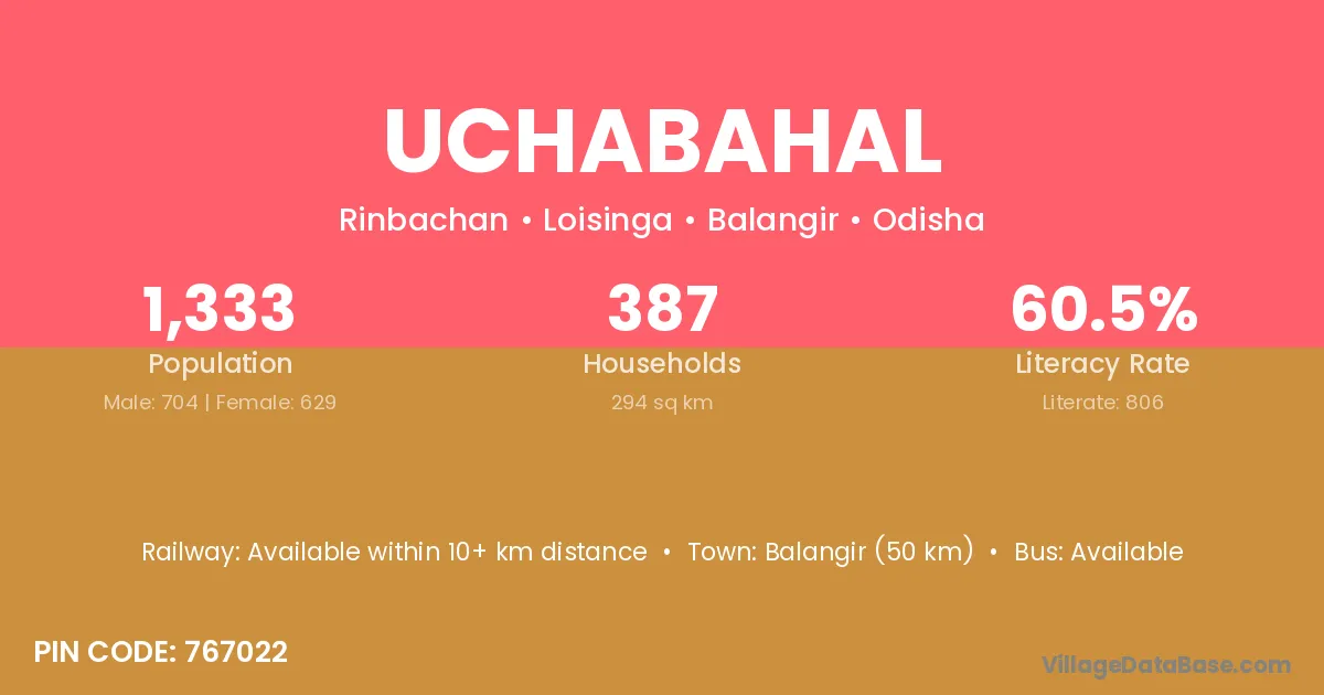 Balangir (50 km) is the nearest town to Uchabahal village for major economic activities and is located approximately 50 km away.