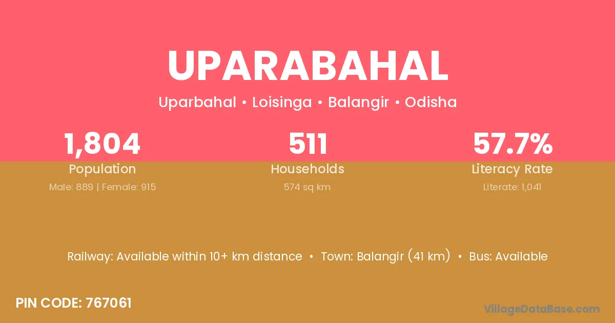 Balangir (41 km) is the nearest town to Uparabahal village for major economic activities and is located approximately 41 km away.