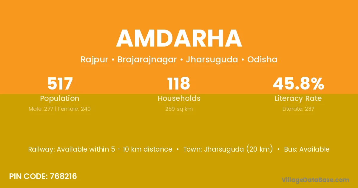 Patnagarh (16 km) is the nearest town to Amdarha village for major economic activities and is located approximately 16 km away.