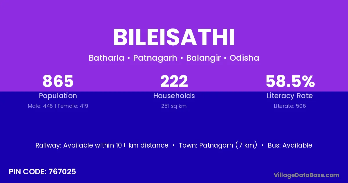 Bileisathi village has a total population of 865 people, of which 446 are males and 419 are females.