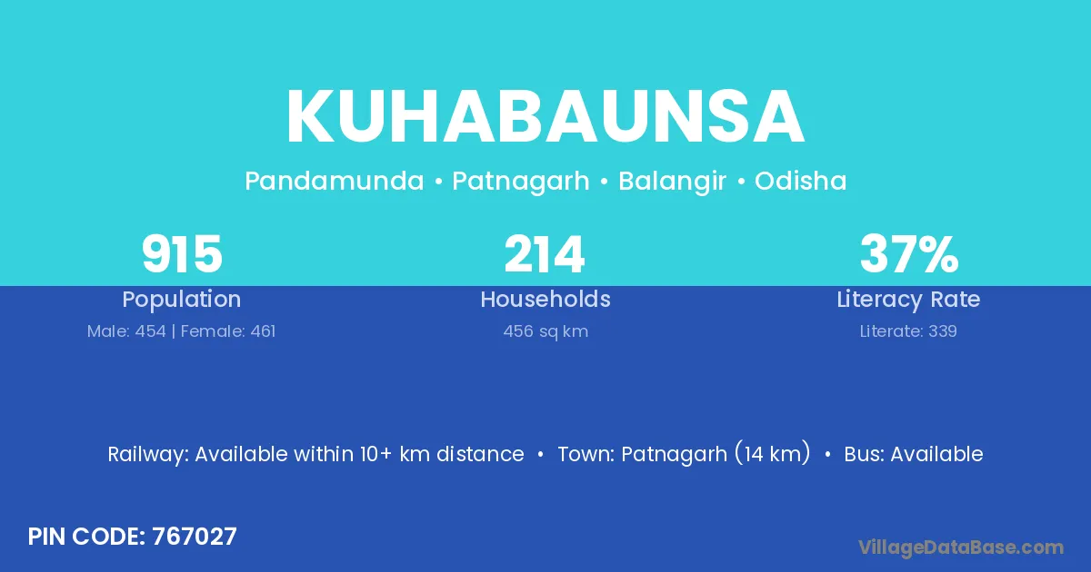Patnagarh (14 km) is the nearest town to Kuhabaunsa village for major economic activities and is located approximately 14 km away.