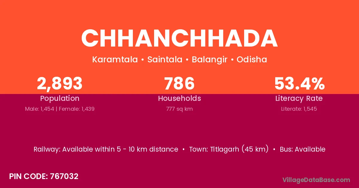 Titlagarh (45 km) is the nearest town to Chhanchhada village for major economic activities and is located approximately 45 km away.