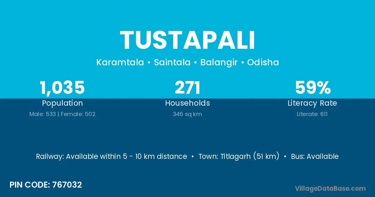 Tustapali village has a total population of 1,035 people, of which 533 are males and 502 are females.
