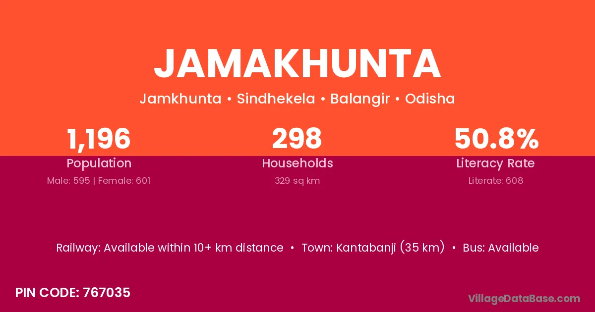 Kantabanji (35 km) is the nearest town to Jamakhunta village for major economic activities and is located approximately 35 km away.