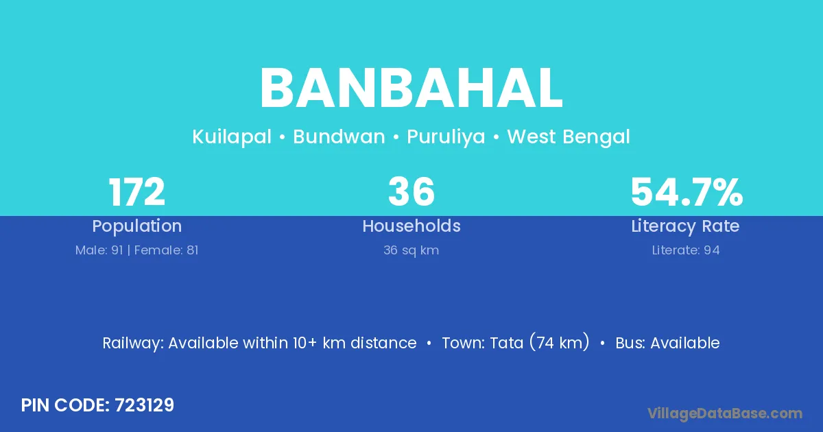Titlagarh (22 km) is the nearest town to Banbahal village for major economic activities and is located approximately 22 km away.