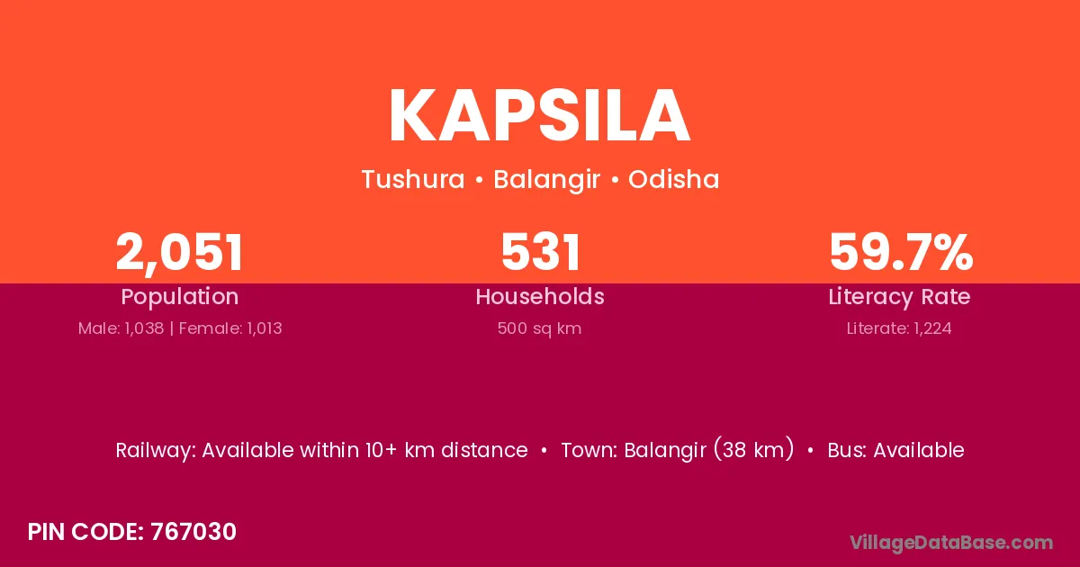 Balangir (38 km) is the nearest town to Kapsila village for major economic activities and is located approximately 38 km away.