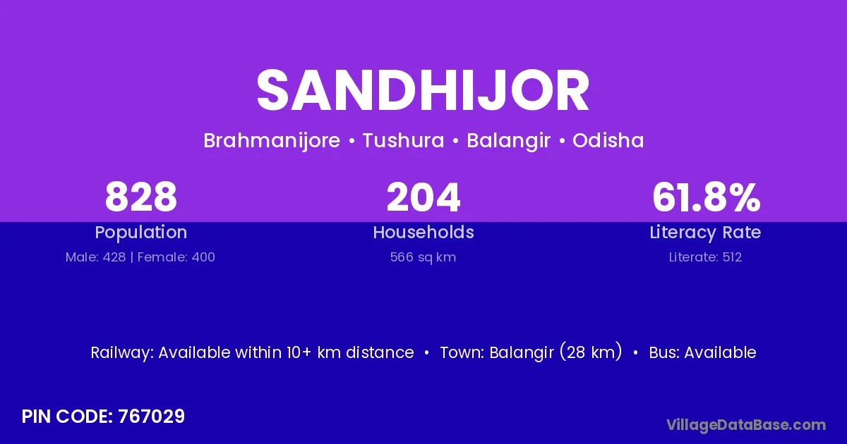 Balangir (28 km) is the nearest town to Sandhijor village for major economic activities and is located approximately 28 km away.