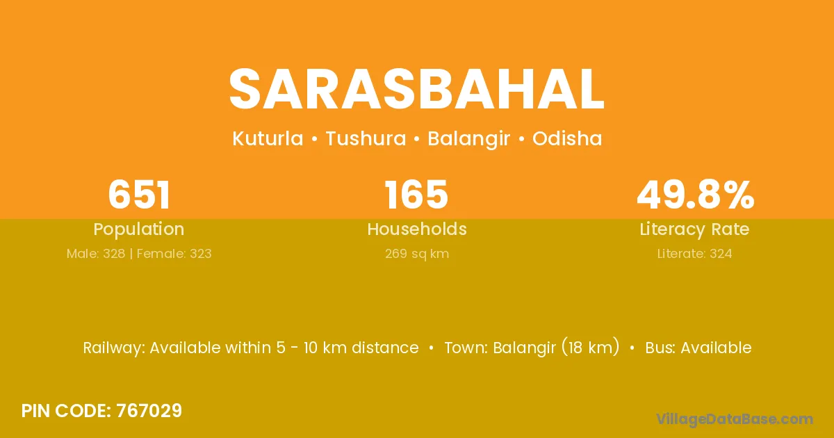 Balangir (18 km) is the nearest town to Sarasbahal village for major economic activities and is located approximately 18 km away.