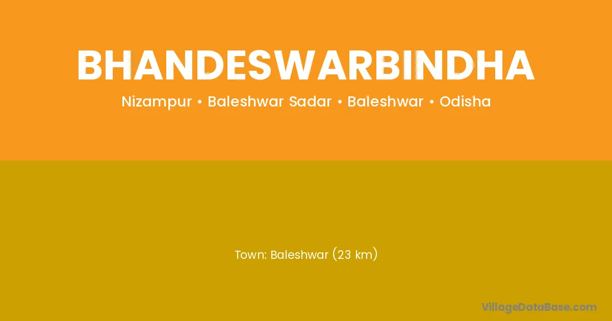 Baleshwar (23 km) is the nearest town to Bhandeswarbindha village for major economic activities and is located approximately 23 km away.