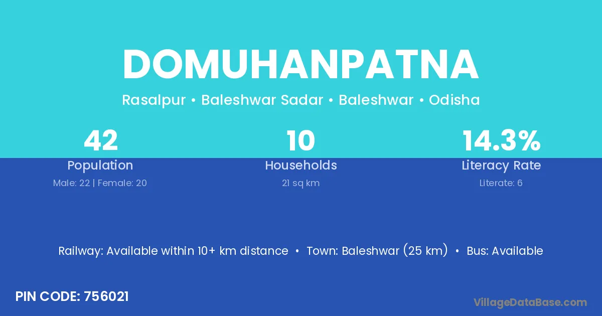 Baleshwar (25 km) is the nearest town to Domuhanpatna village for major economic activities and is located approximately 25 km away.