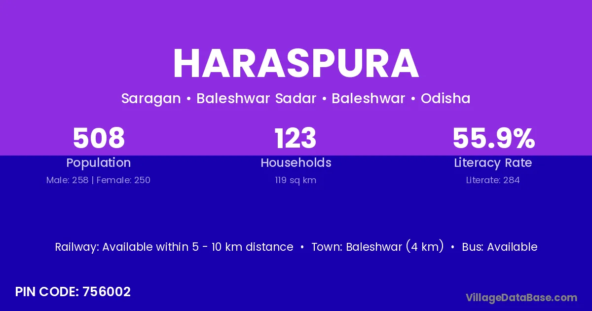 Baleshwar (4 km) is the nearest town to Haraspura village for major economic activities and is located approximately 4 km away.