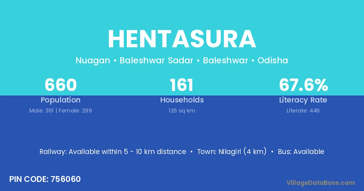 Hentasura village has a total population of 660 people, of which 361 are males and 299 are females.