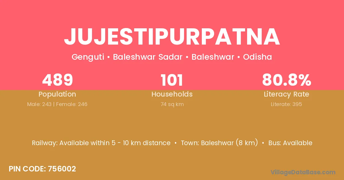 Baleshwar (8 km) is the nearest town to Jujestipurpatna village for major economic activities and is located approximately 8 km away.