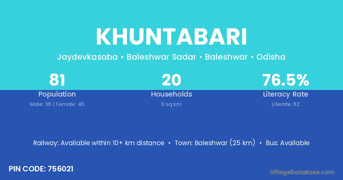 Khuntabari village has a total population of 81 people, of which 36 are males and 45 are females.