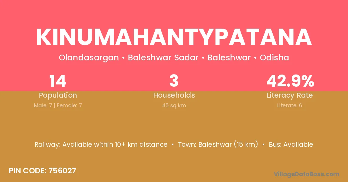 Baleshwar (15 km) is the nearest town to Kinumahantypatana village for major economic activities and is located approximately 15 km away.