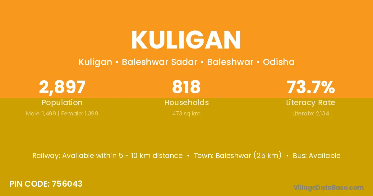 Baleshwar (25 km) is the nearest town to Kuligan village for major economic activities and is located approximately 25 km away.