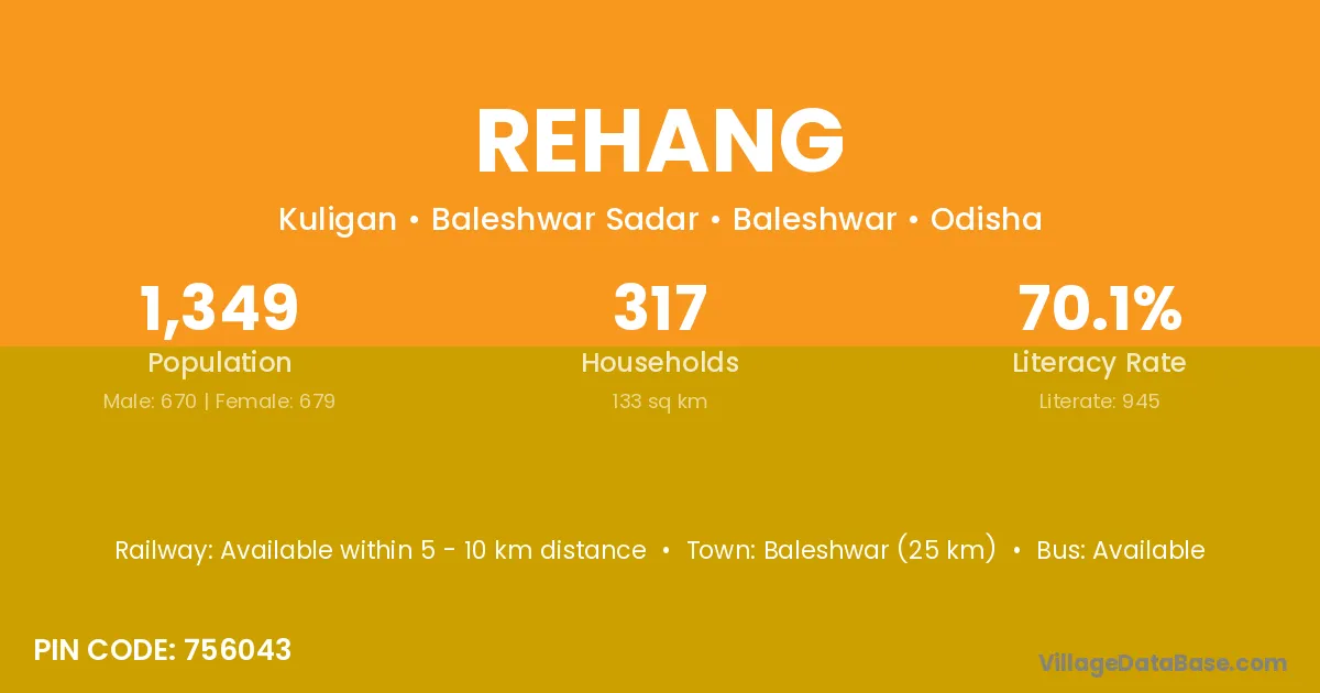 Baleshwar (25 km) is the nearest town to Rehang village for major economic activities and is located approximately 25 km away.