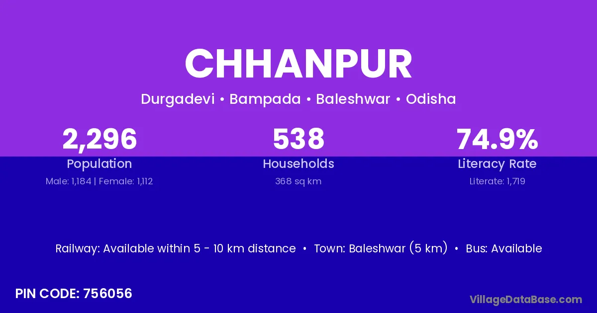 Baleshwar (5 km) is the nearest town to Chhanpur village for major economic activities and is located approximately 5 km away.