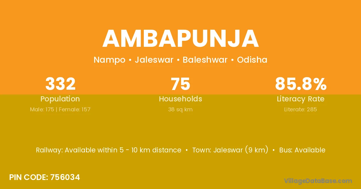 Baleshwar (15 km) is the nearest town to Ambapunja village for major economic activities and is located approximately 15 km away.