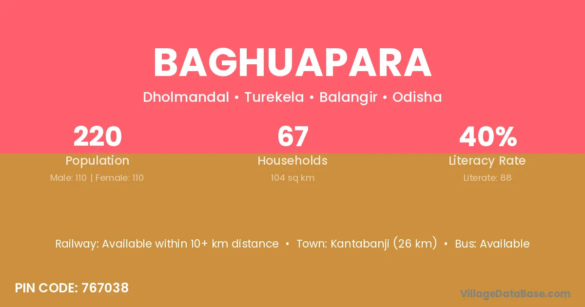 Jaleswar (25 km) is the nearest town to Baghuapara village for major economic activities and is located approximately 25 km away.
