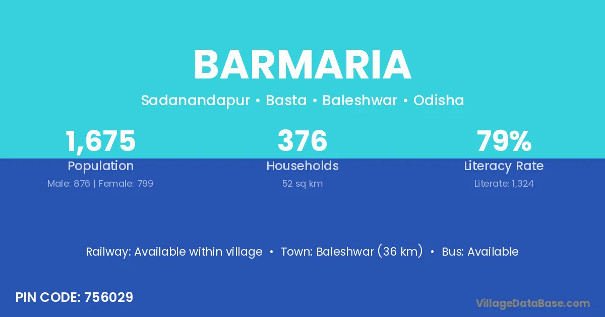 Baleshwar (36 km) is the nearest town to Barmaria village for major economic activities and is located approximately 36 km away.
