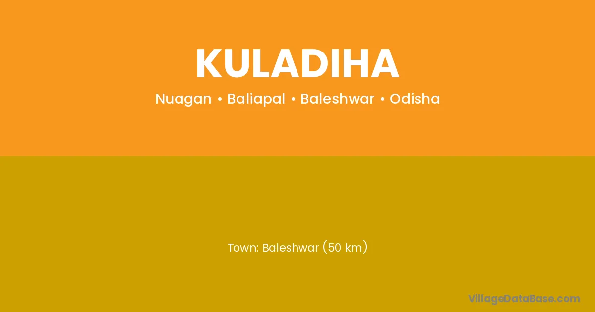 Jaleswar (23 km) is the nearest town to Kuladiha village for major economic activities and is located approximately 23 km away.