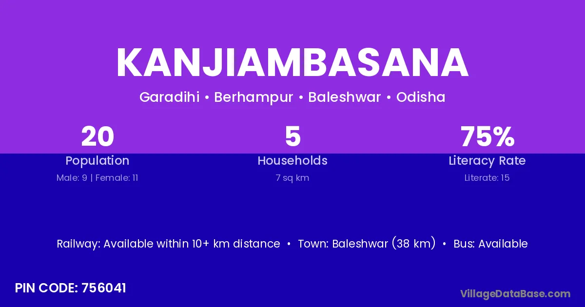 Baleshwar (38 km) is the nearest town to Kanjiambasana village for major economic activities and is located approximately 38 km away.