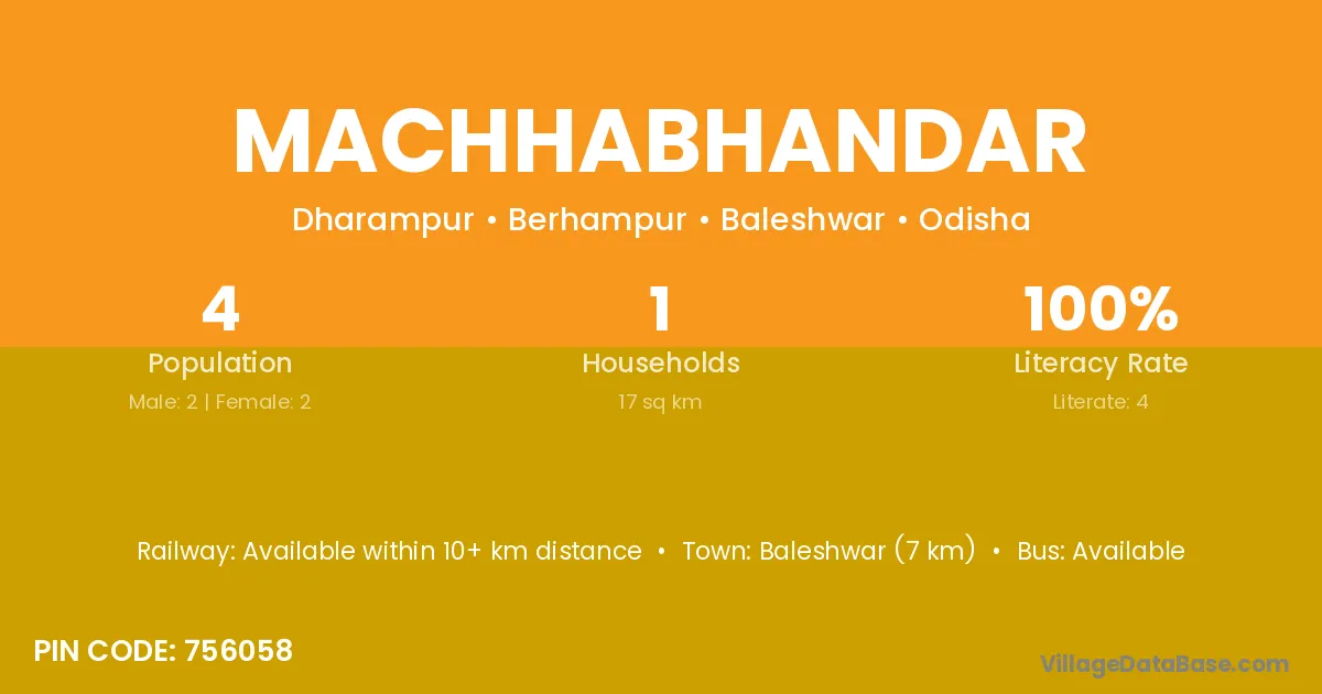 Machhabhandar village has a total population of 4 people, of which 2 are males and 2 are females.