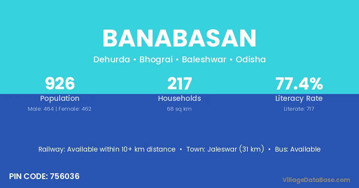 Jaleswar (31 km) is the nearest town to Banabasan village for major economic activities and is located approximately 31 km away.