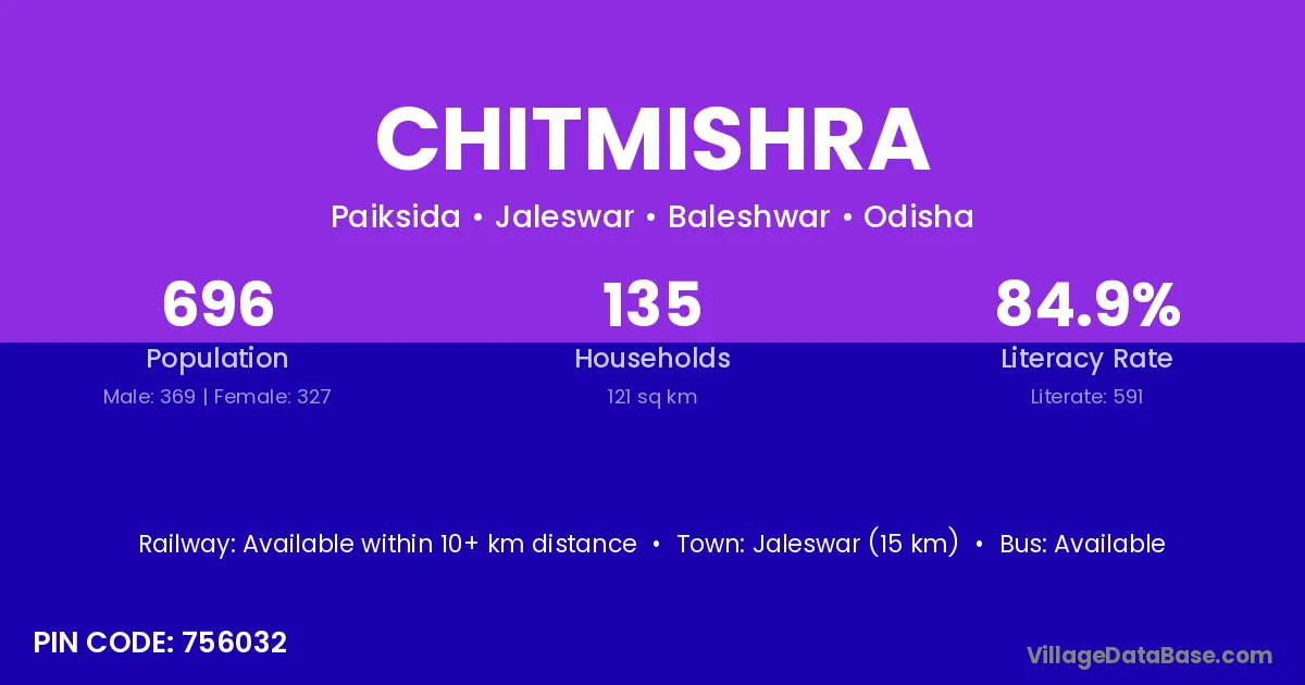 Jaleswar (15 km) is the nearest town to Chitmishra village for major economic activities and is located approximately 15 km away.