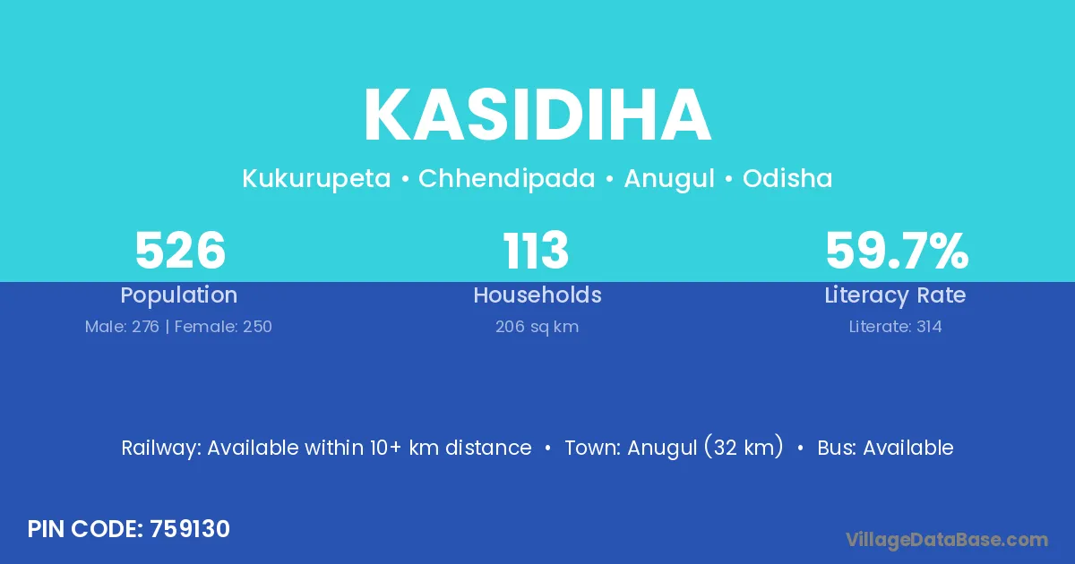Jaleswar (4 km) is the nearest town to Kasidiha village for major economic activities and is located approximately 4 km away.