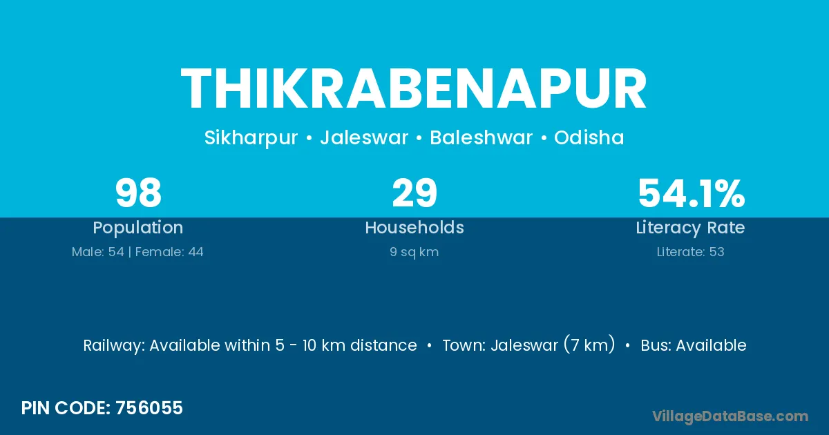 Jaleswar (7 km) is the nearest town to Thikrabenapur village for major economic activities and is located approximately 7 km away.