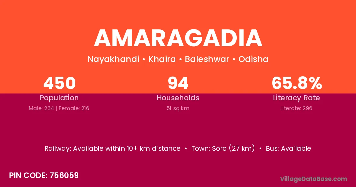 Amaragadia village has a total population of 450 people, of which 234 are males and 216 are females.