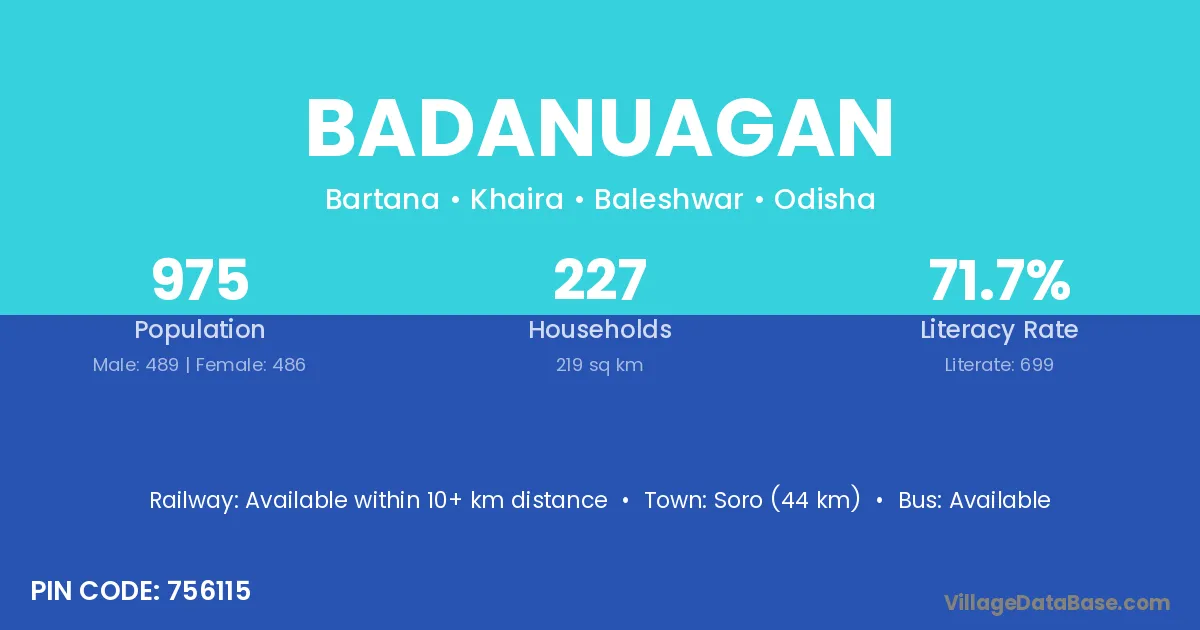 Badanuagan village has a total population of 975 people, of which 489 are males and 486 are females.