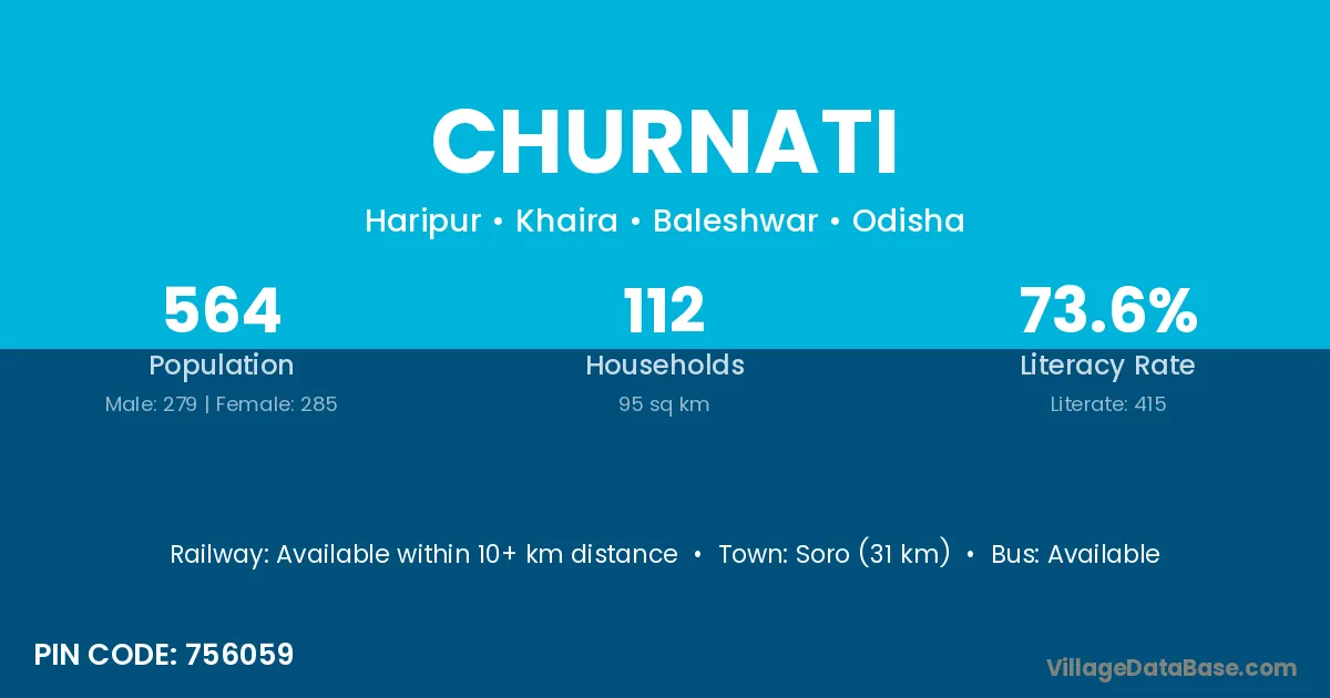 Soro (31 km) is the nearest town to Churnati village for major economic activities and is located approximately 31 km away.
