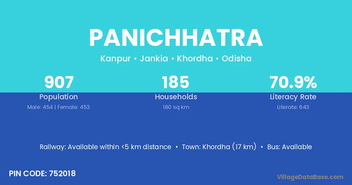 Bhadrak (24 km) is the nearest town to Panichhatra village for major economic activities and is located approximately 24 km away.