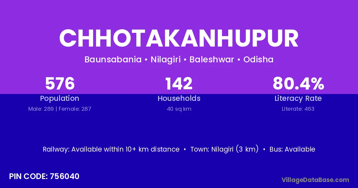 Nilagiri (3 km) is the nearest town to Chhotakanhupur village for major economic activities and is located approximately 3 km away.