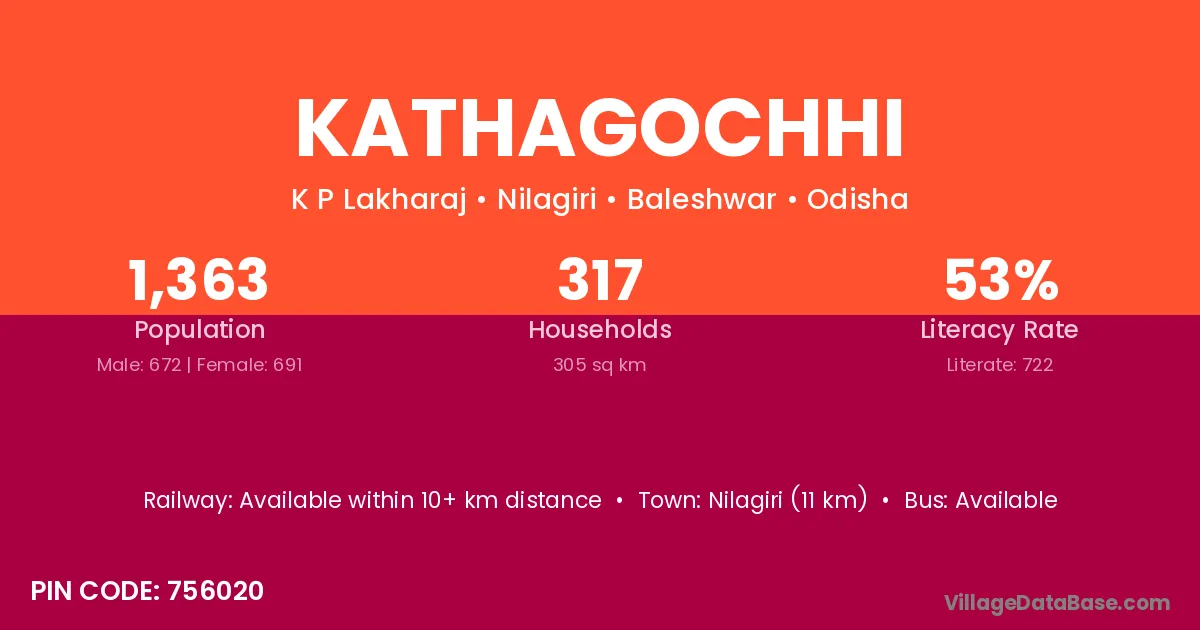 Nilagiri (11 km) is the nearest town to Kathagochhi village for major economic activities and is located approximately 11 km away.