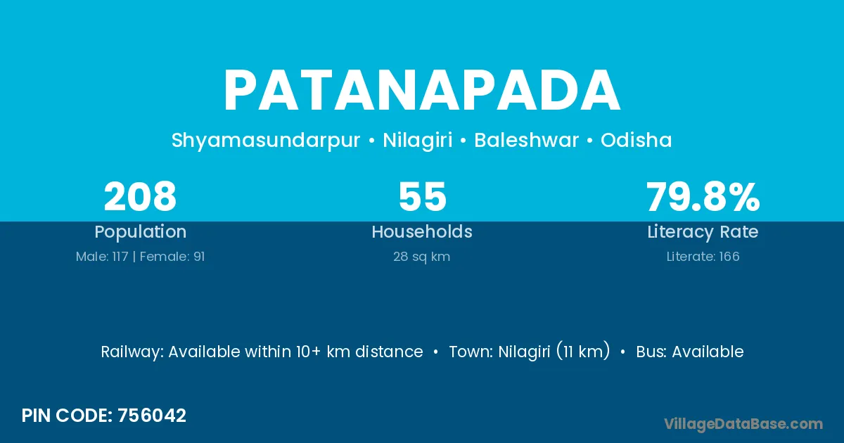 Nilagiri (11 km) is the nearest town to Patanapada village for major economic activities and is located approximately 11 km away.