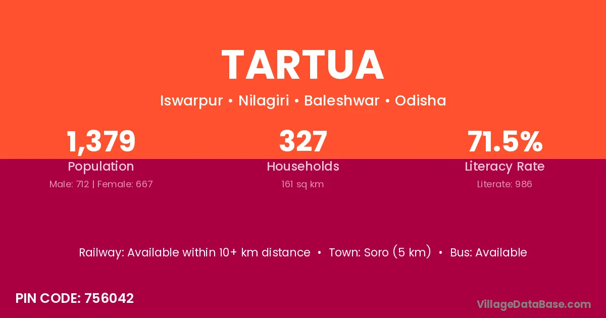 Tartua village has a total population of 1,379 people, of which 712 are males and 667 are females.