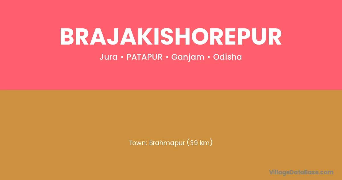 Soro (21 km) is the nearest town to Brajakishorepur village for major economic activities and is located approximately 21 km away.