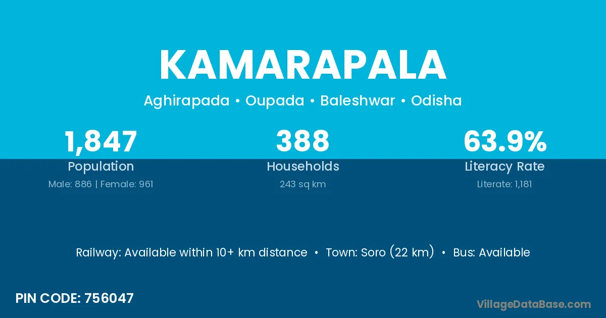 Kamarapala village has a total population of 1,847 people, of which 886 are males and 961 are females.