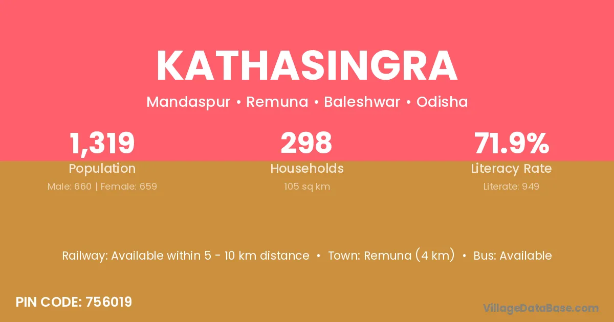 Remuna (4 km) is the nearest town to Kathasingra village for major economic activities and is located approximately 4 km away.