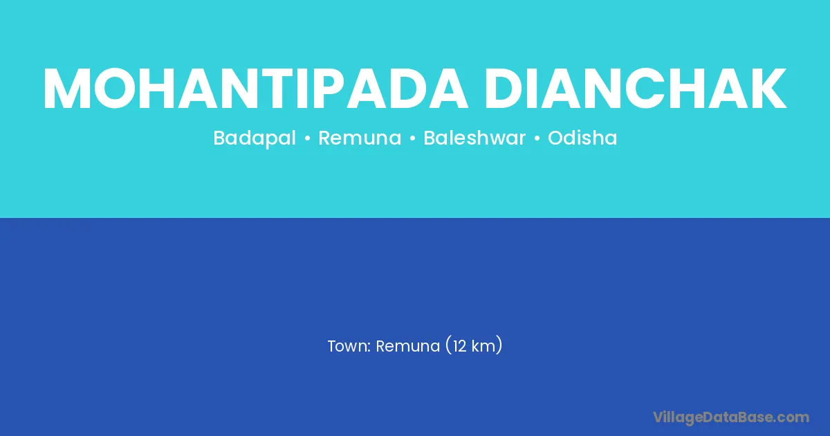 Mohantipada Dianchak village is located in the Remuna Tehsil of the Baleshwar district in Odisha .