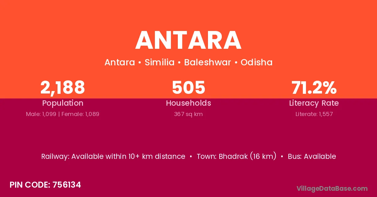 Bhadrak (16 km) is the nearest town to Antara village for major economic activities and is located approximately 16 km away.