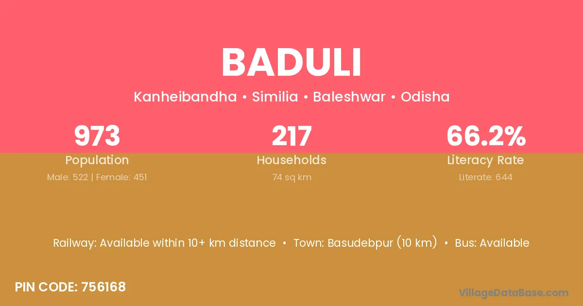 Basudebpur (10 km) is the nearest town to Baduli village for major economic activities and is located approximately 10 km away.