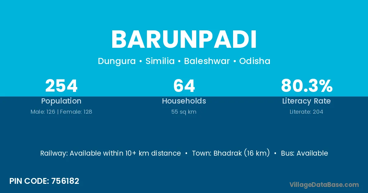 Bhadrak (16 km) is the nearest town to Barunpadi village for major economic activities and is located approximately 16 km away.