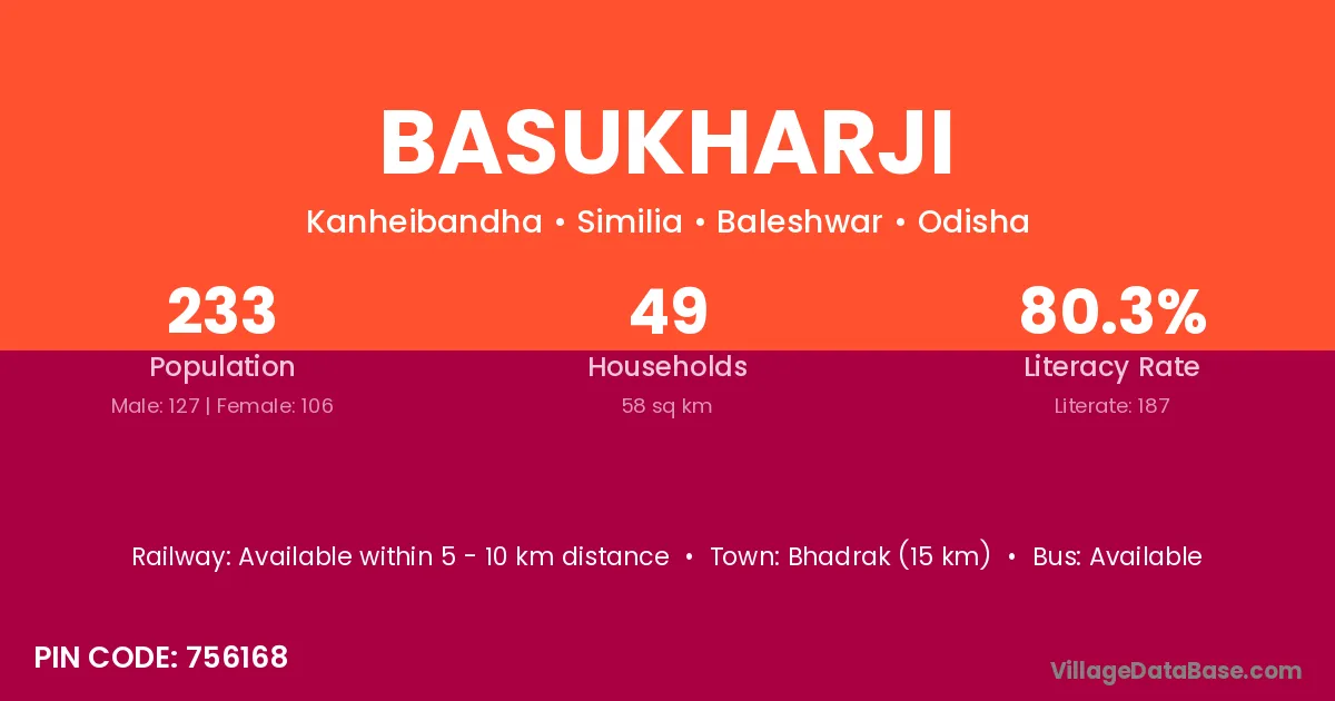 Bhadrak (15 km) is the nearest town to Basukharji village for major economic activities and is located approximately 15 km away.