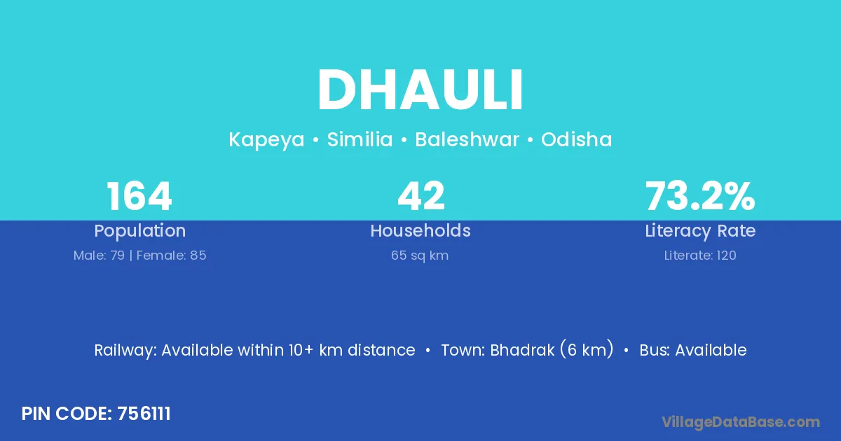 Dhauli village has a total population of 164 people, of which 79 are males and 85 are females.