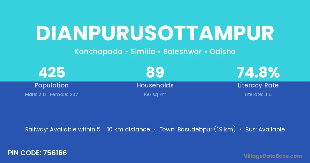 Basudebpur (19 km) is the nearest town to Dianpurusottampur village for major economic activities and is located approximately 19 km away.